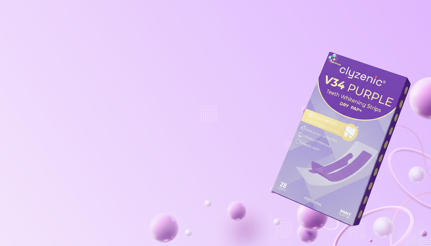 Clyzenic PAP+ Mor Diş Beyazlatma Bandı, hassasiyetsiz ve hızlı etki sunan gelişmiş beyazlatma teknolojisiyle sarı tonları kısa sürede nötralize eder.